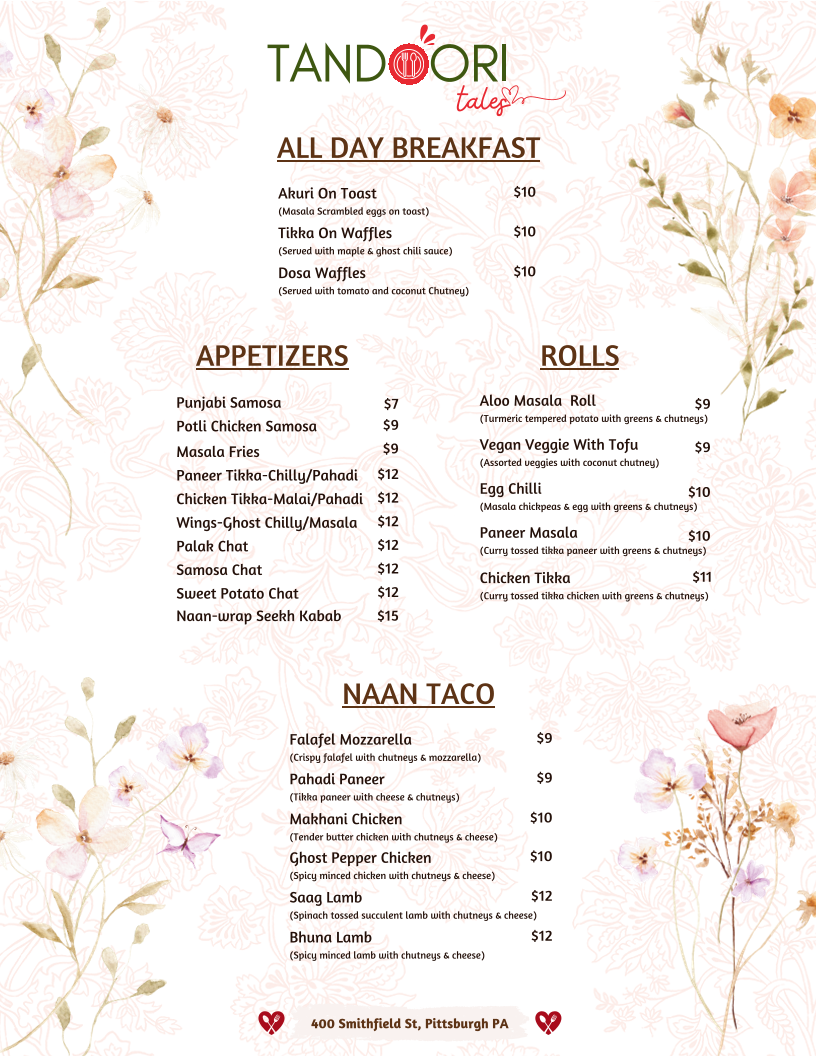 Welcome to Tandoori Tales, a modern Indian restaurant nestled in the heart of downtown Pittsburgh. Opened in July, this eatery is redefining Indian cuisine with a contemporary twist, offering an exciting all-day breakfast and delectable naan tacos.